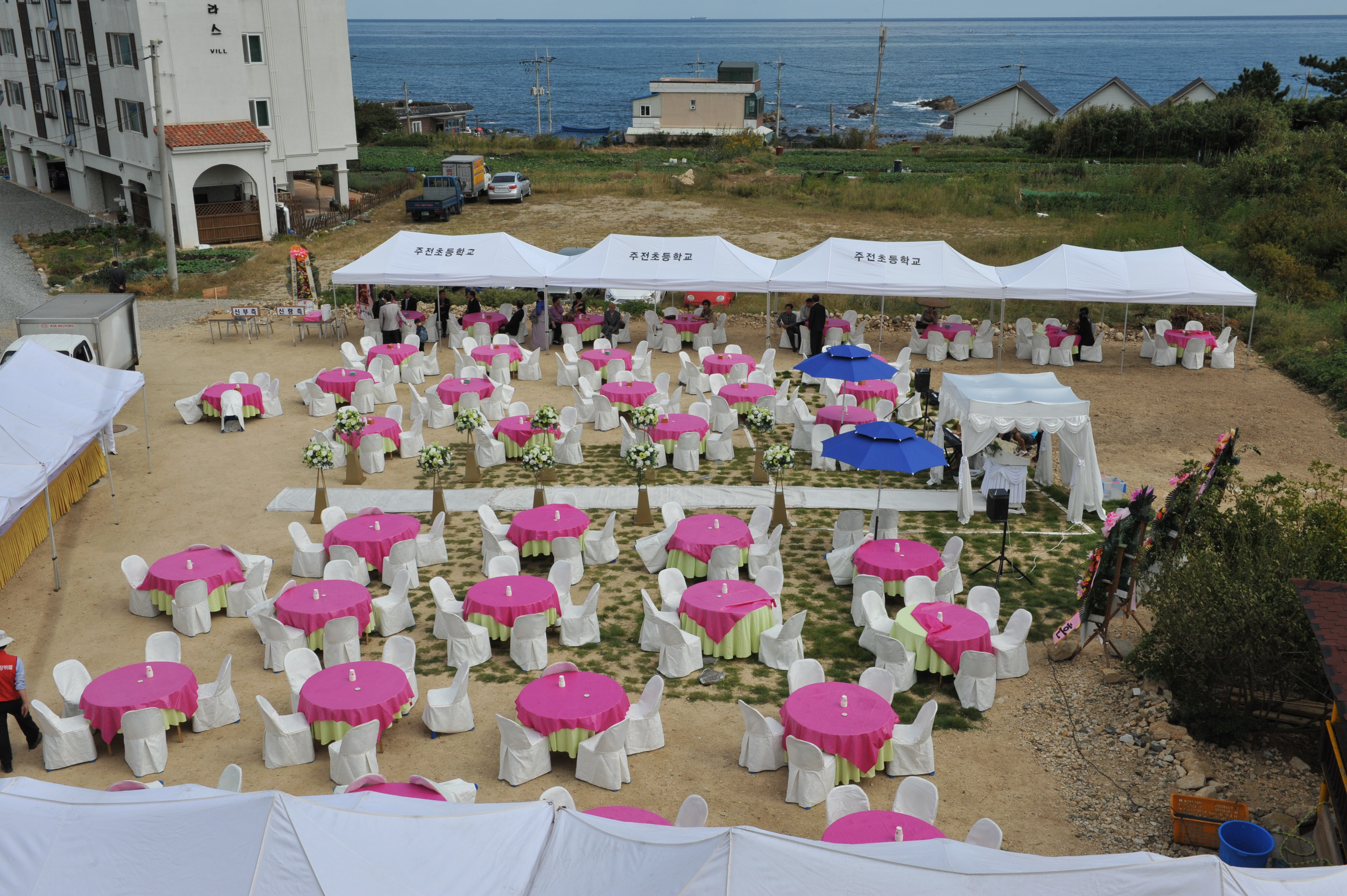 펜션 3층에서 내려다본 결혼식장 전경.....
